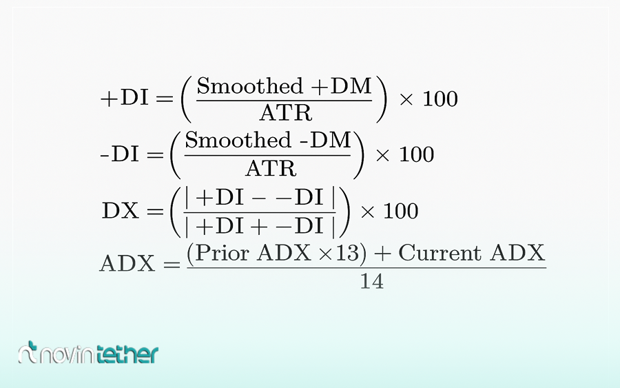 در مرحله اول محاسبه «دامنه واقعی» (True Range) که نشاندهنده نوسانات قیمت در یک دوره زمانی خاص است انجام میگیرد. سپس نوبت به محاسبه «حرکت جهتدار» (Directional Movement) میرسد که نشاندهنده قدرت روند صعودی یا نزولی خواهد بود. در مرحله بعد، باید به محاسبه شاخصهای DI+ و DI- پرداخت. از این دو شاخص در نهایت برای محاسبات خط ADX استفاده خواهد شد.